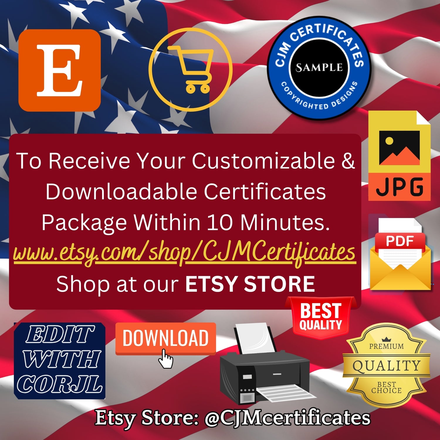 Shop on Etsy for all our downloadable and customizable certificates. Receive your certificate package in your email from CORJL in 10 minutes after your purchase.