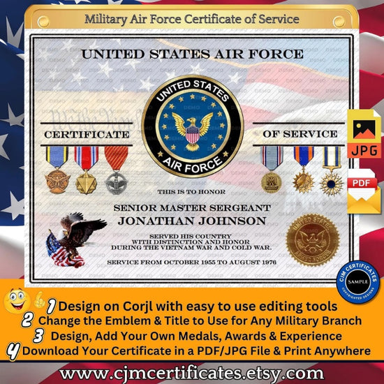 US MILITARY CERTIFICATE OF SERVICEPurchase Your Certificate Template - Customize Your Certificates in CORJL - Download & Print